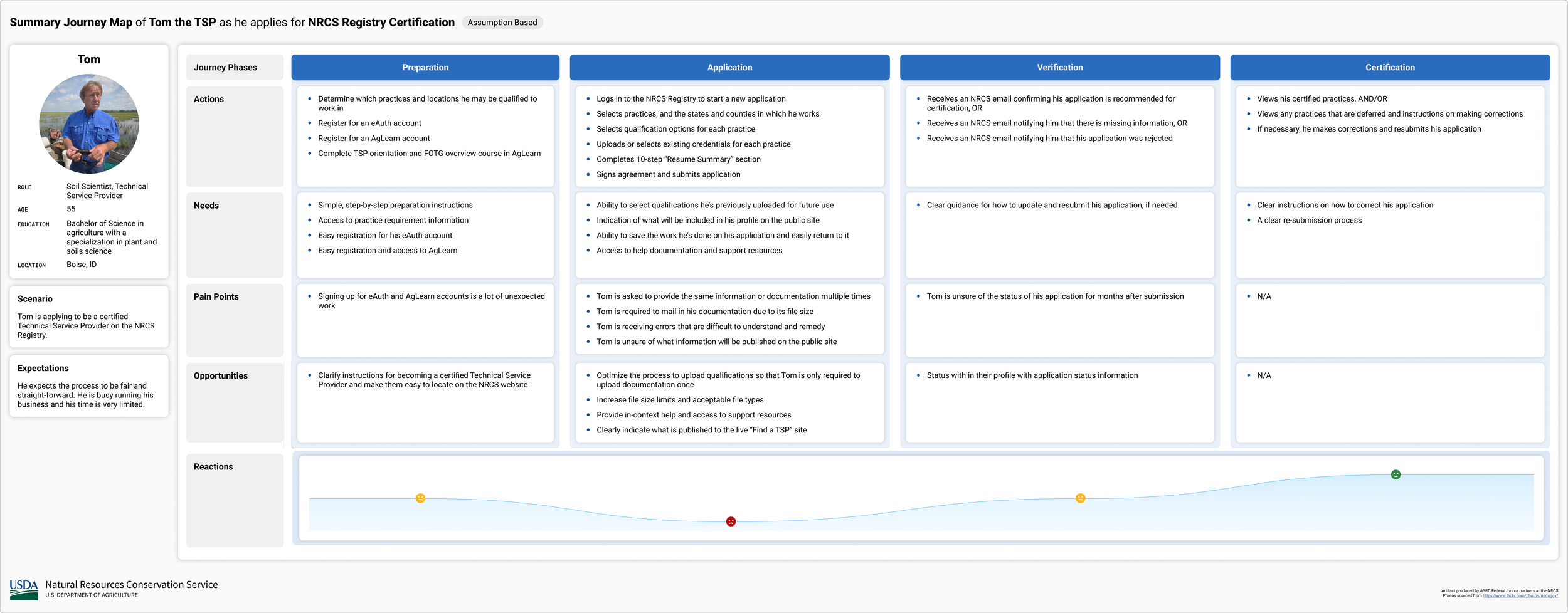 The USDA’s Natural Resources Conservation Service contracted us to redesign the NRCS Registry, the software used to certify Technical Service Providers. This project offered a chance to streamline a complex application process and create a better experience for the partners who help deliver conservation assistance.