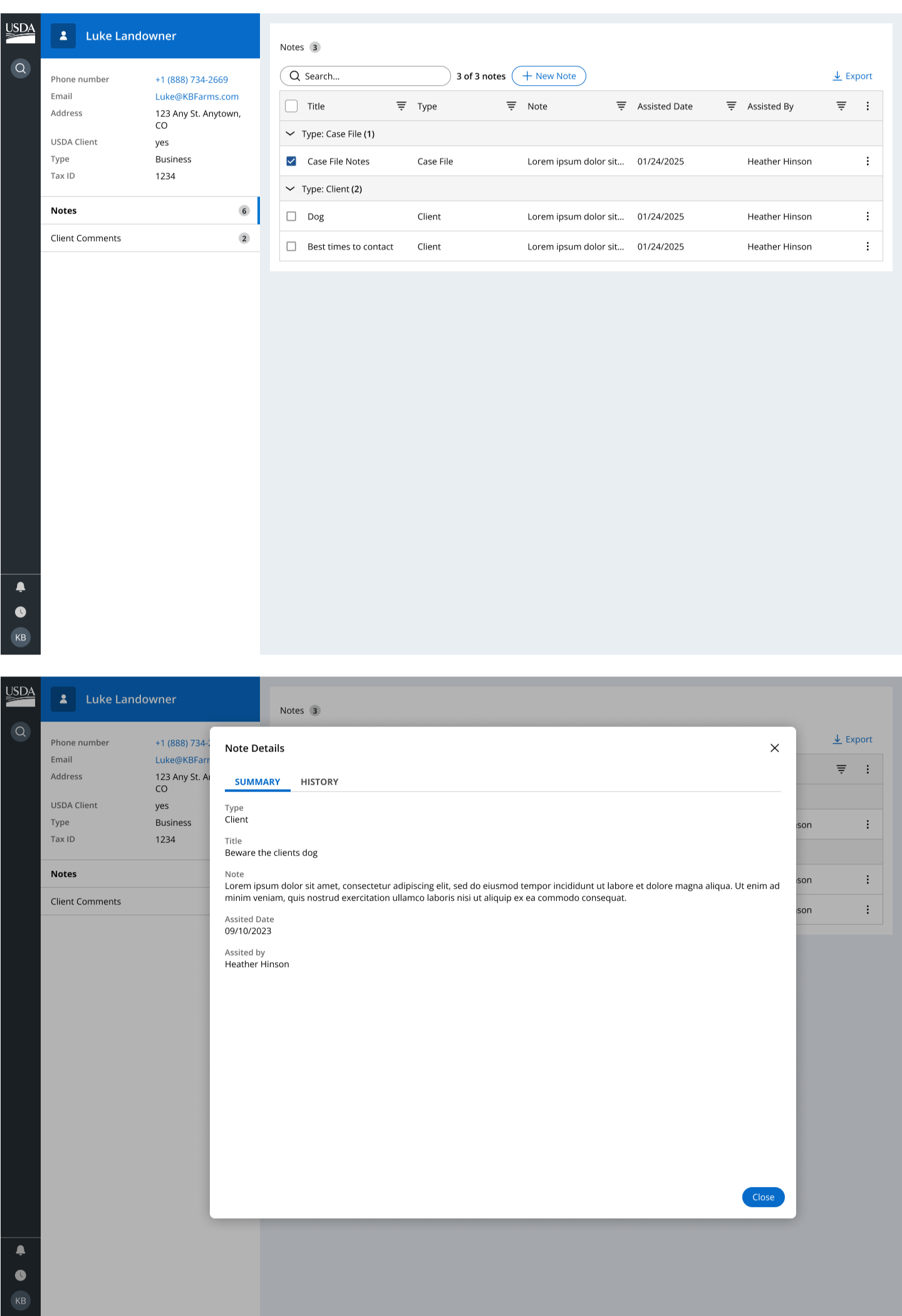 The USDA’s Natural Resources Conservation Service asked our design team to boost adoption of their CRM’s notes feature. Low usage meant there was no reliable, centralized record of client notes—creating gaps in knowledge during staff turnover and risks in the event of a lawsuit.